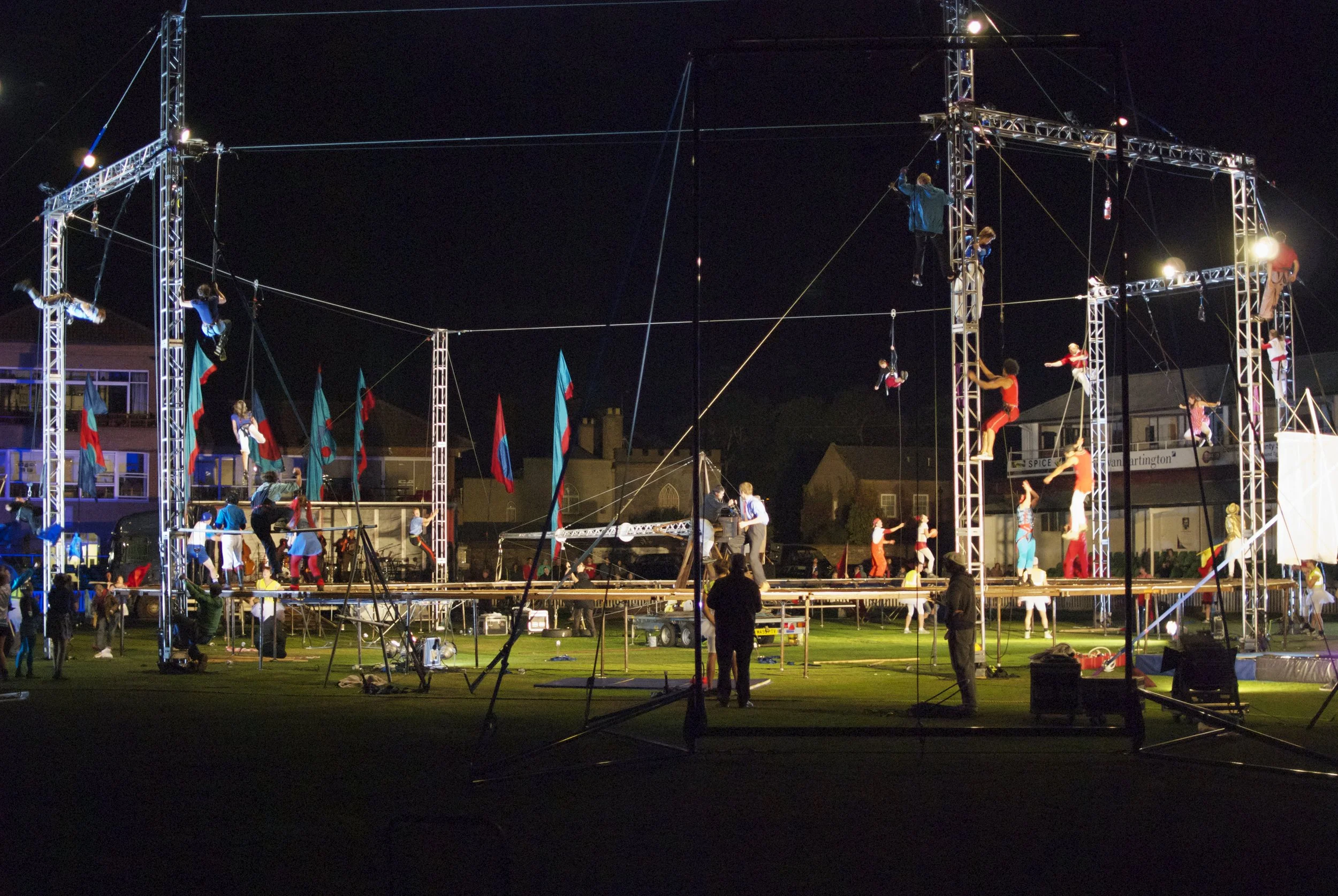 The show involved aerialists on eccentric structures
